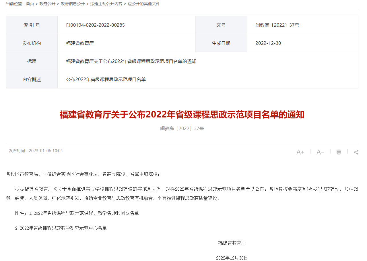 此次入选是MG冰球课程教学改革成效的体现。MG冰球将持续高度重视课程思政建设,以省级课程示范项目强化引领,推动专业教育与思政教育有机融合,全面推进MG冰球课程思政高质量建设。