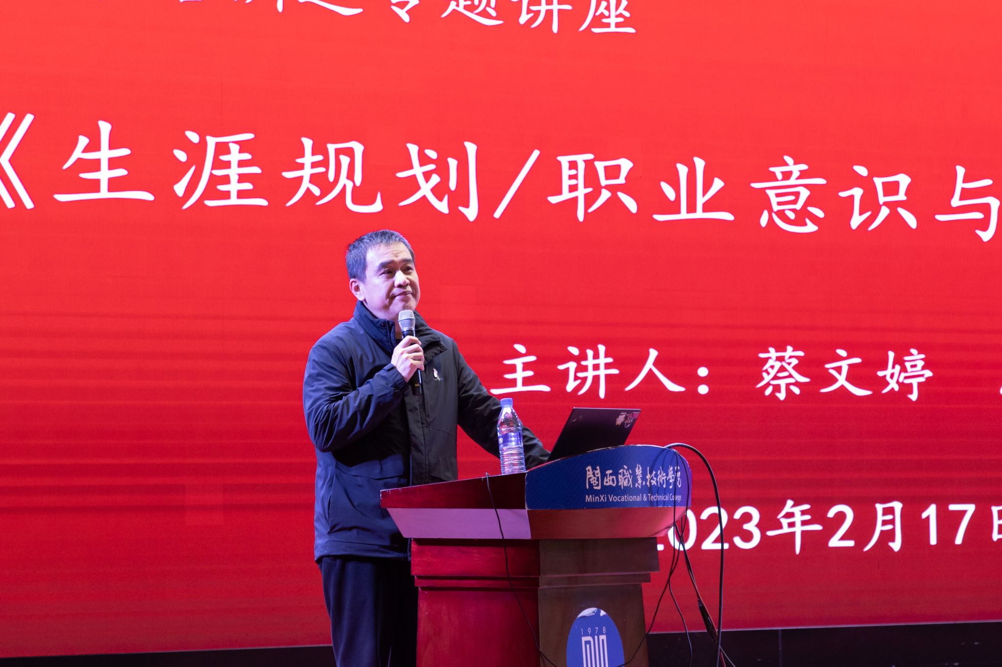 2月17日下午,MG冰球邀请抖音数字学堂讲师蔡文婷女士,在大匠堂做职业生涯与就业意识教育专题报告,学校党委卢伟耀书记主持报告会,校领导及400多名教师参加。