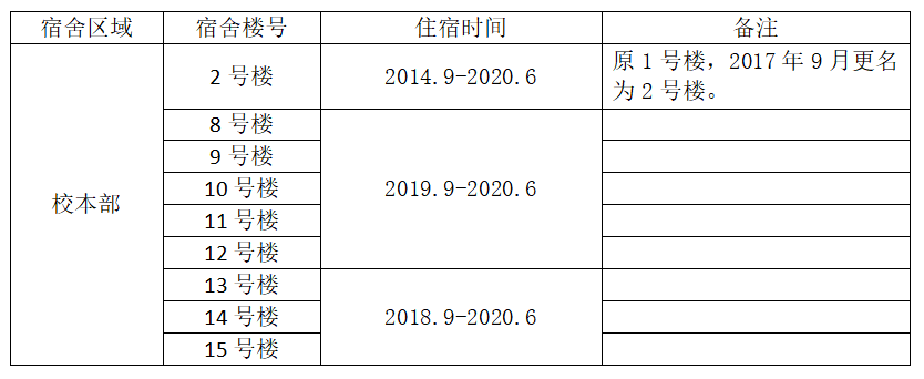 一、退款对象:以下时间段住宿在校本部相应楼幢的住宿生。