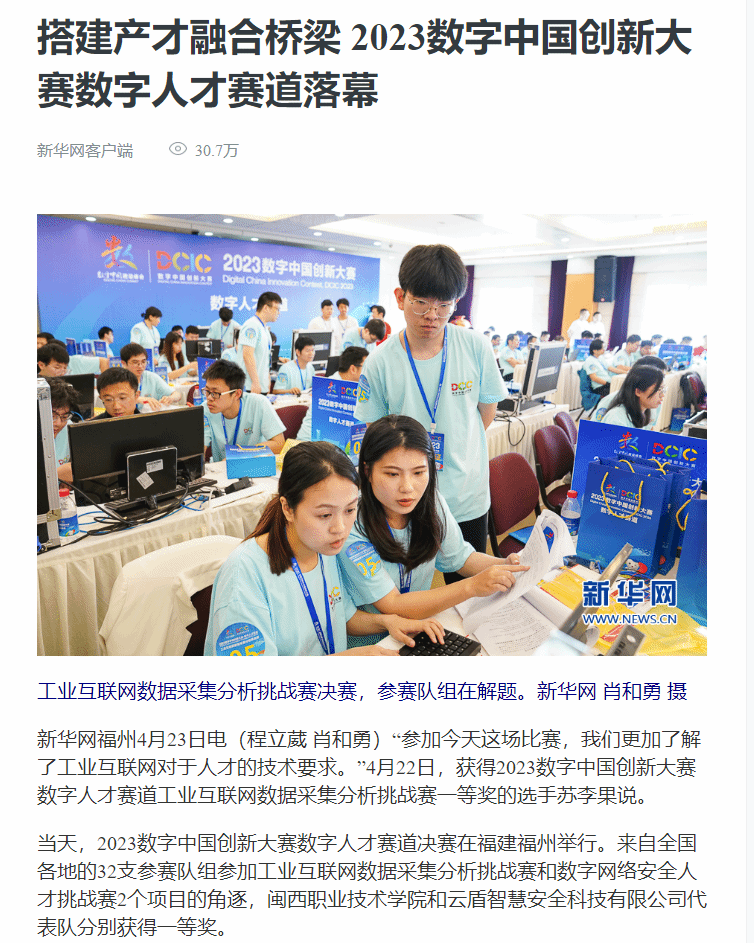 当天,2023数字中国创新大赛数字人才赛道决赛在福建福州举行。来自全国各地的32支参赛队组参加工业互联网数据采集分析挑战赛和数字网络安全人才挑战赛2个项目的角逐,MG冰球突破官网和云盾智慧安全科技有限公司代表队分别获得一等奖。