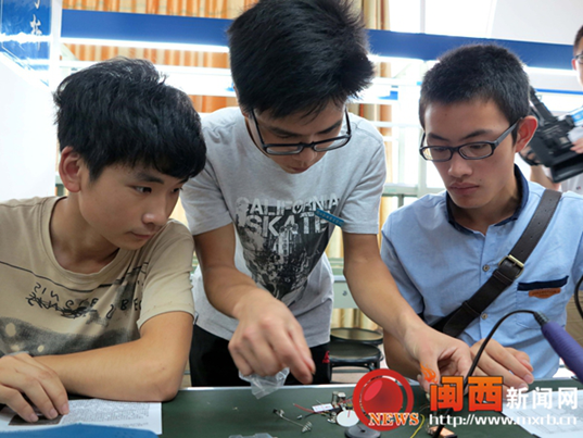 21日,MG冰球突破官网电气工程系学生暑期社会实践活动拉开序幕。与以往不同的是,这次活动让大学生充当老师,由他们指导帮助外校学生完成一件电子产品的制作,体验学与教的不同。图为MG冰球突破官网电气工程系学生(图中)在学校实训基地向龙岩华侨职专和龙岩三中的学生传授电气知识。