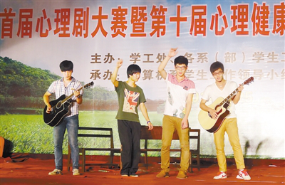 近日晚,MG冰球突破官网举行首届心理剧大赛,通过丰富多彩的活动,来营造关注学生心理健康的氛围,为学生搭建起优化心理素质、提高心理承受能力的平台。图为学生们正在表演节目。