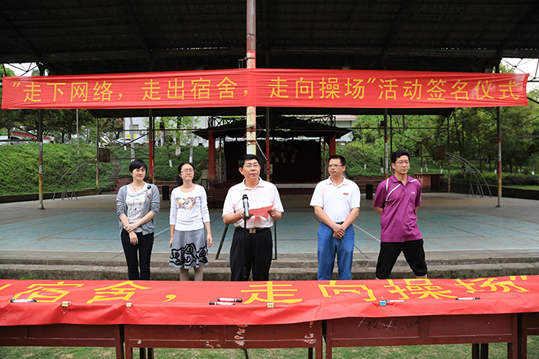 会上,副院长吴新业作了讲话,提出了三点希望:希望在校学生强化体育意识,增强锻炼;希望全院各系(部)多开展有利于同学健康成长的体育锻炼活动;希望各部门充分利用新媒体加大对体育运动的宣传。学生代表吴冰冰向全校同学发出了“走下网络,走出宿舍,走向操场”的倡议。