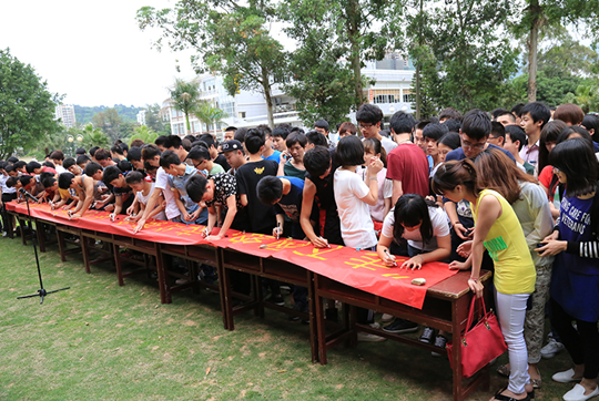 为贯彻落实党的十八届三中全会关于“强化体育课和课外锻炼,促进青少年身心健康、体魄强健”的精神和团中央、教育部等4部门联合通知精神,近日,MG冰球突破官网在槟龙球场举行“走下网络,走出宿舍,走向操场”活动启动仪式暨签名仪式。副院长吴新业,院团委、学工处、基础部相关负责人以及全院12个系(部)学生代表近200人参加了启动仪式。