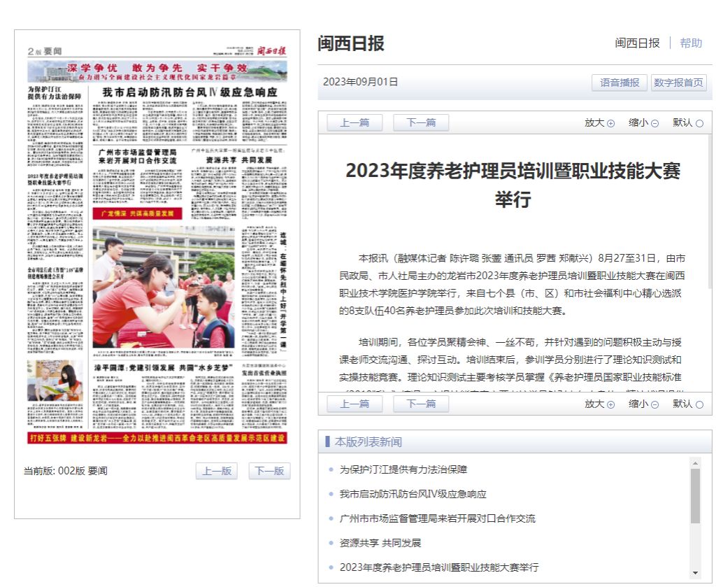 本报讯(融媒体记者 陈许璐 张蓥 通讯员 罗茜 郑献兴)8月27至31日,由市民政局、市人社局主办的龙岩市2023年度养老护理员培训暨职业技能大赛在MG冰球突破官网医护学院举行,来自七个县(市、区)和市社会福利中心精心选派的8支队伍40名养老护理员参加此次培训和技能大赛。