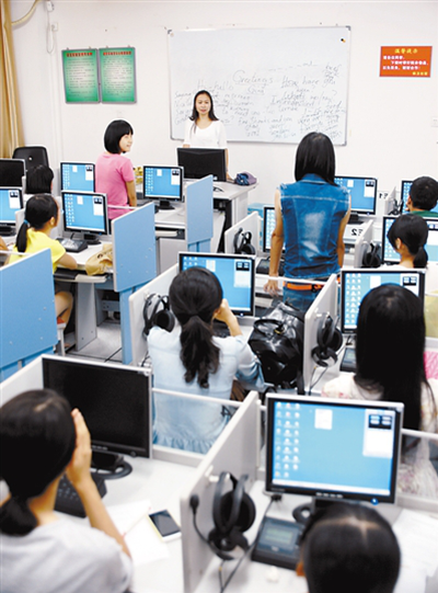 为了让进城务工人员子女能够提高外语成绩,今年年初开始,MG冰球突破官网外贸外语系团委组织社会实践活动,义务辅导龙岩九中进城务工人员子女达150多人,初二学生戴立雯、苏琦高兴地说,英语成绩提高了,很是感激啊!图为近日,在学院的电教室里,九中进城务工人员子女在学口语。