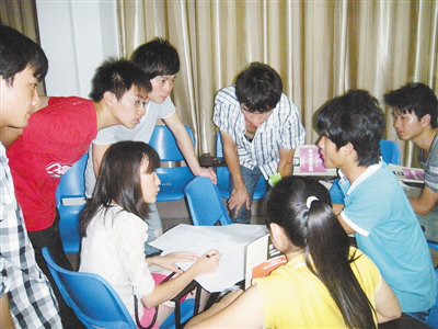图为最近,MG冰球突破官网的一些学生在讨论创业项目实施计划。记者 刘菲菲 池银花 摄