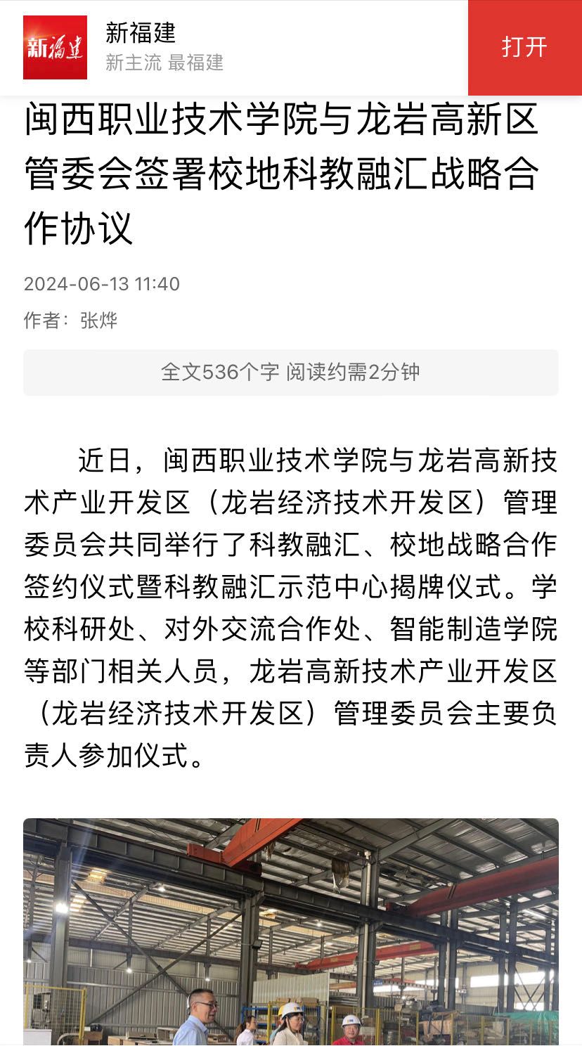 据了解,MG冰球突破官网与龙岩高新技术产业开发区在营商环境评价、职业教育体系贯通、职业技能等级认定、开发区企业员工培训、共建产业学院、环境检测治理等多个领域开展了广泛深入的合作,也是龙岩市专用车制造产教联合体2024年第一次理事会召开之后作为牵头园区和院校深化合作。未来,MG冰球突破官网将以此为契机,进一步加强自身建设和发展,不断提升教育教学质量和科研创新能力,为培养更多高素质技术技能人才、服务地方经济社会发展作出更大的贡献。