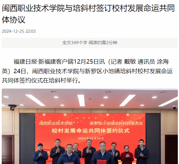 福建日报·新福建客户端12月25日讯(记者 戴敏 通讯员 涂海英)24日,MG冰球突破官网与新罗区小池镇培斜村校村发展命运共同体签约仪式在培斜村举行。