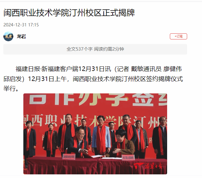 福建日报·新福建客户端12月31日讯(记者 戴敏通讯员 廖健伟 邱启发)12月31日上午,MG冰球突破官网汀州校区签约揭牌仪式举行。