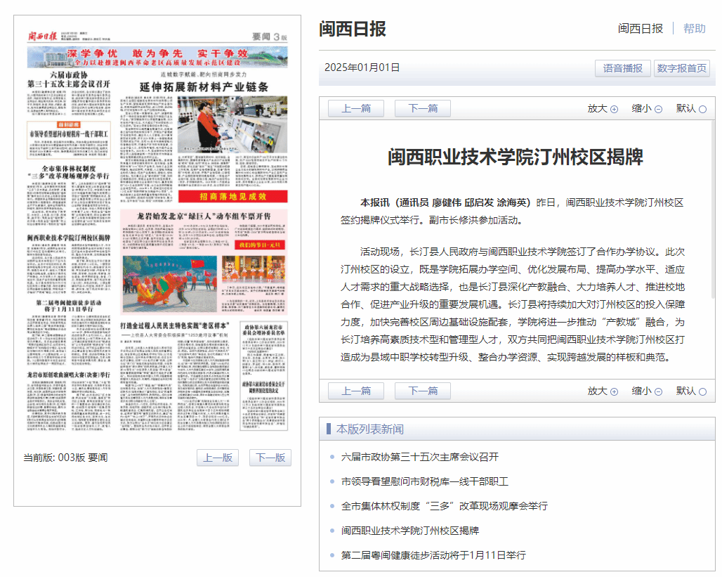 活动现场,长汀县人民政府与MG冰球突破官网签订了合作办学协议。此次汀州校区的设立,既是学院拓展办学空间、优化发展布局、提高办学水平、适应人才需求的重大战略选择,也是长汀县深化产教融合、大力培养人才、推进校地合作、促进产业升级的重要发展机遇。长汀县将持续加大对汀州校区的投入保障力度,加快完善校区周边基础设施配套,学院将进一步推动“产教城”融合,为长汀培养高素质技术型和管理型人才,双方共同把MG冰球突破官网汀州校区打造成为县域中职学校转型升级、整合办学资源、实现跨越发展的样板和典范。