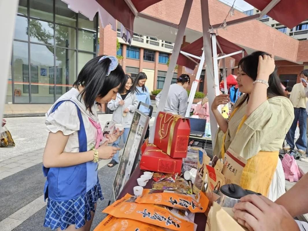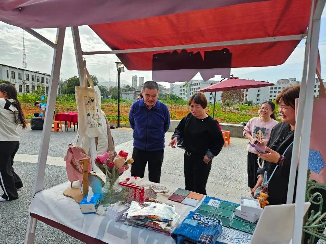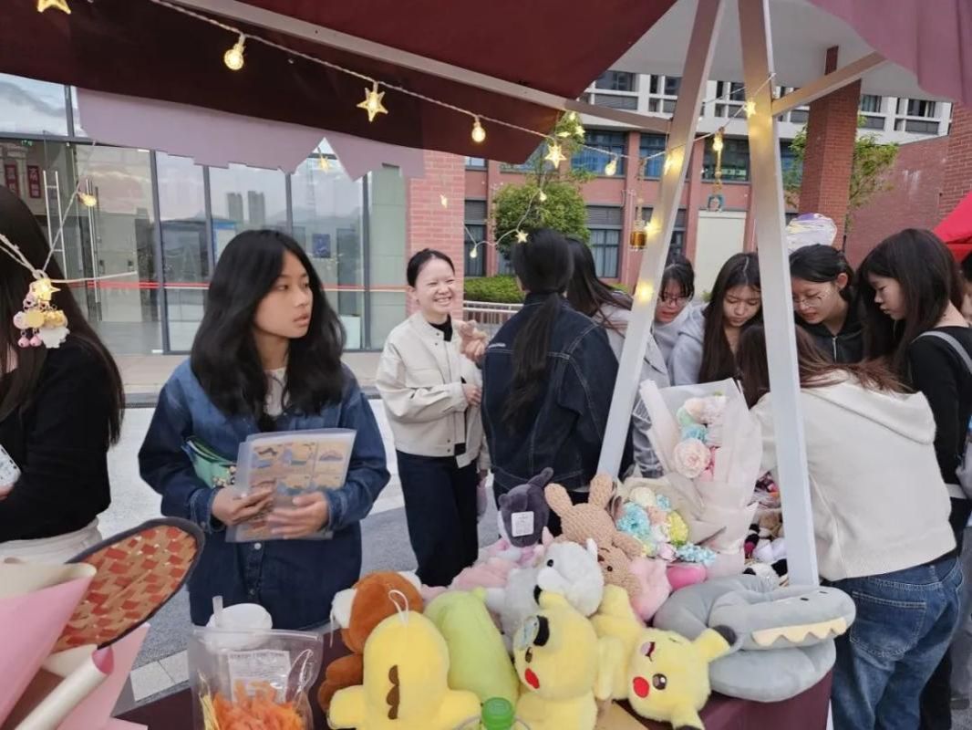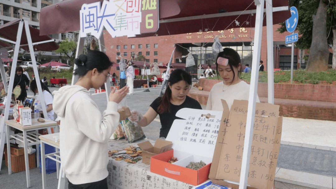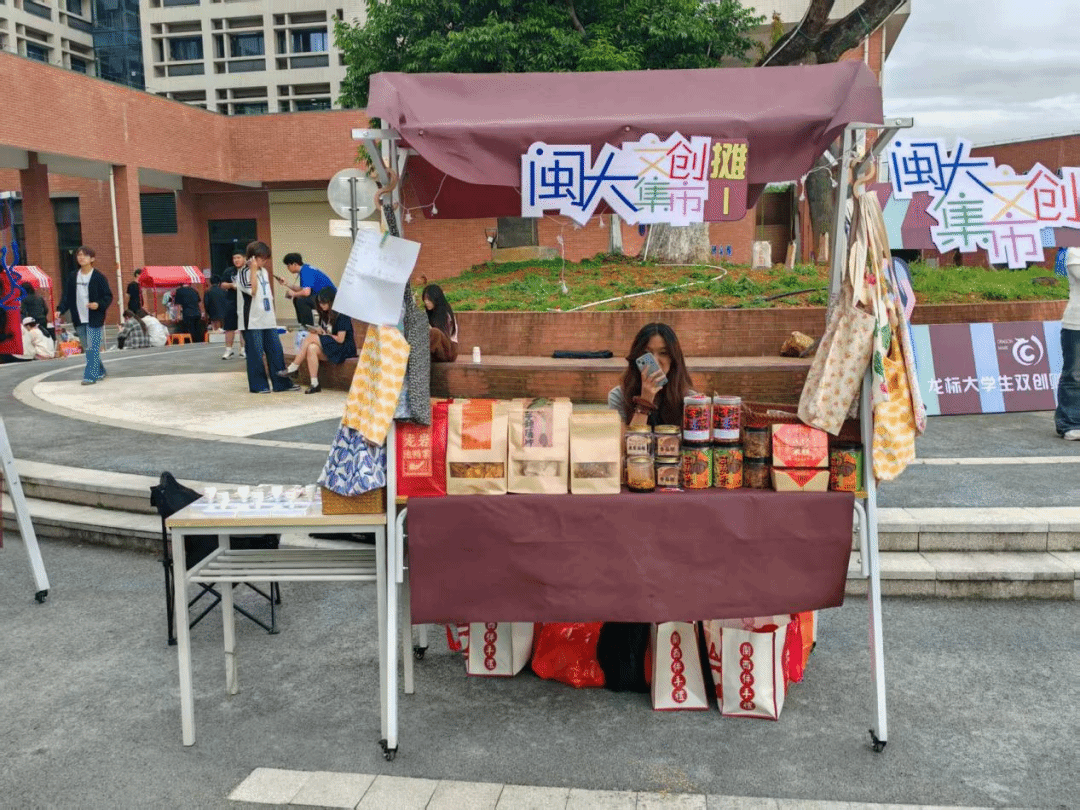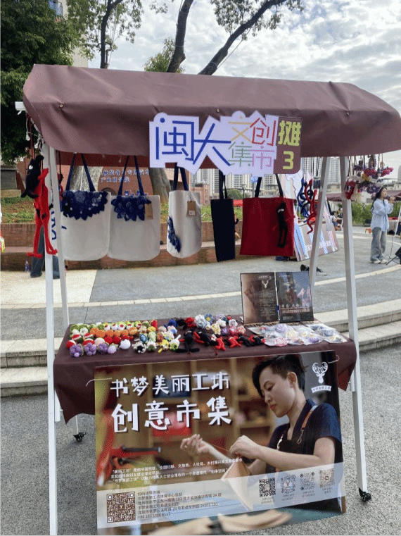 无论是校内的“来财小铺”钩织玩偶、“指尖艺趣”创意手工花,还是校外“岩城叙在地风物馆”的闽西文创礼品、“晓苗拼布工作室”的拼布刺绣,每一个摊位都充满了惊喜!非遗香文化、创意咖啡、皮艺布艺……你想要的创意好物这里全都有!