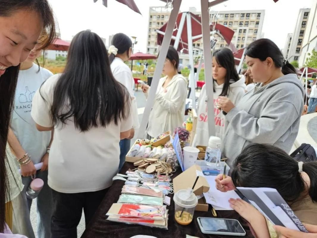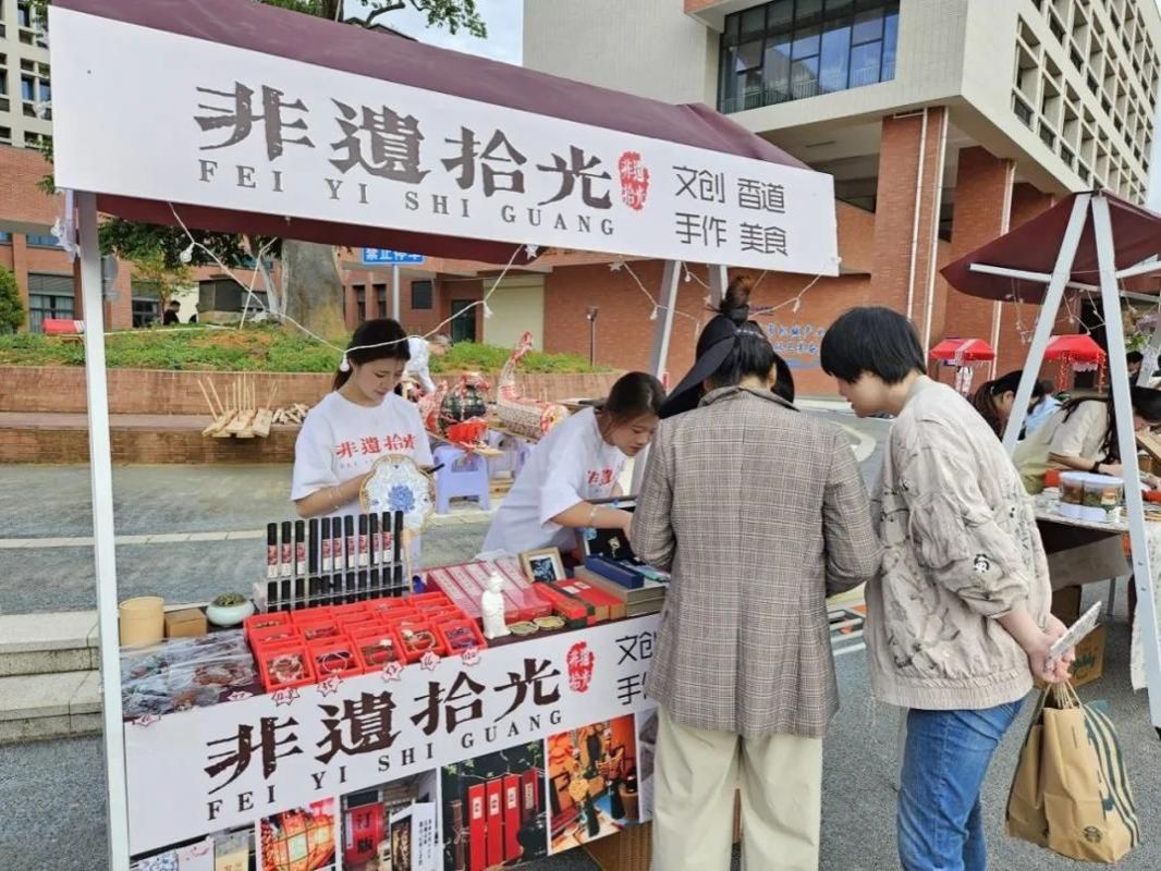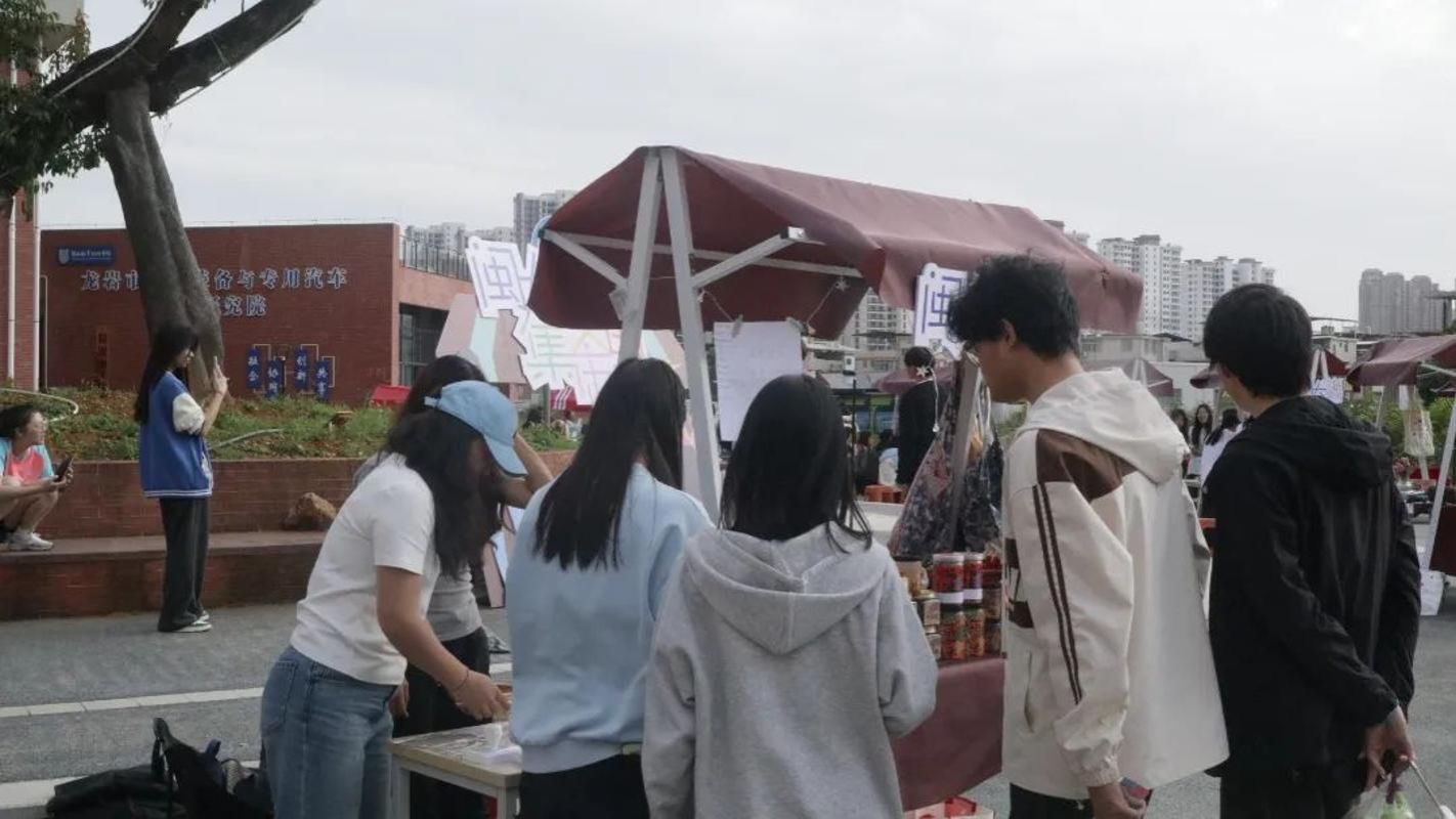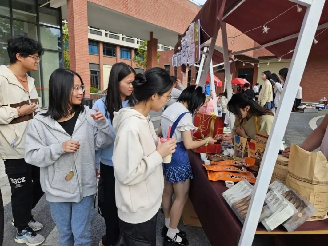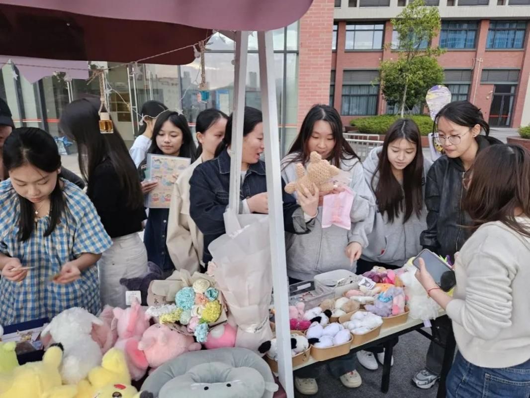 无论是校内的“来财小铺”钩织玩偶、“指尖艺趣”创意手工花,还是校外“岩城叙在地风物馆”的闽西文创礼品、“晓苗拼布工作室”的拼布刺绣,每一个摊位都充满了惊喜!非遗香文化、创意咖啡、皮艺布艺……你想要的创意好物这里全都有!