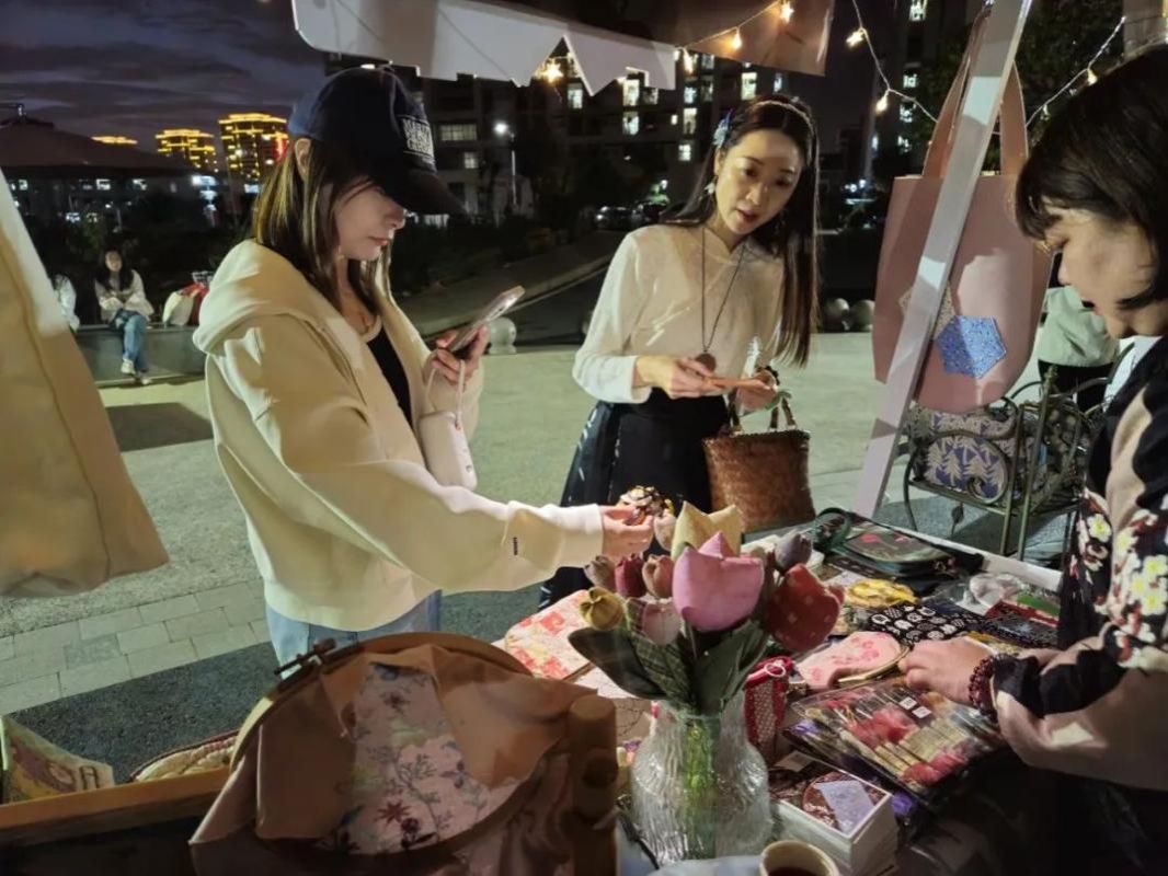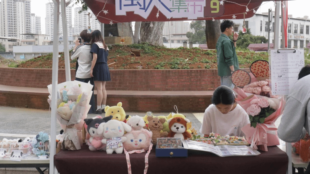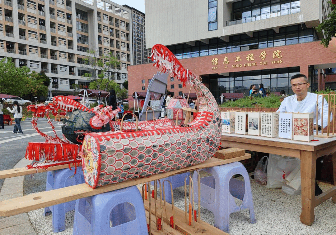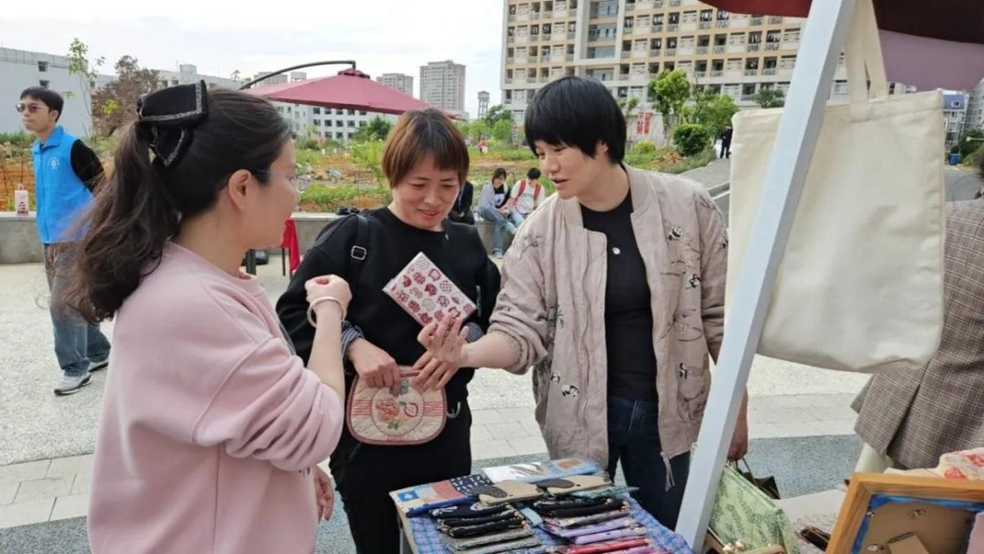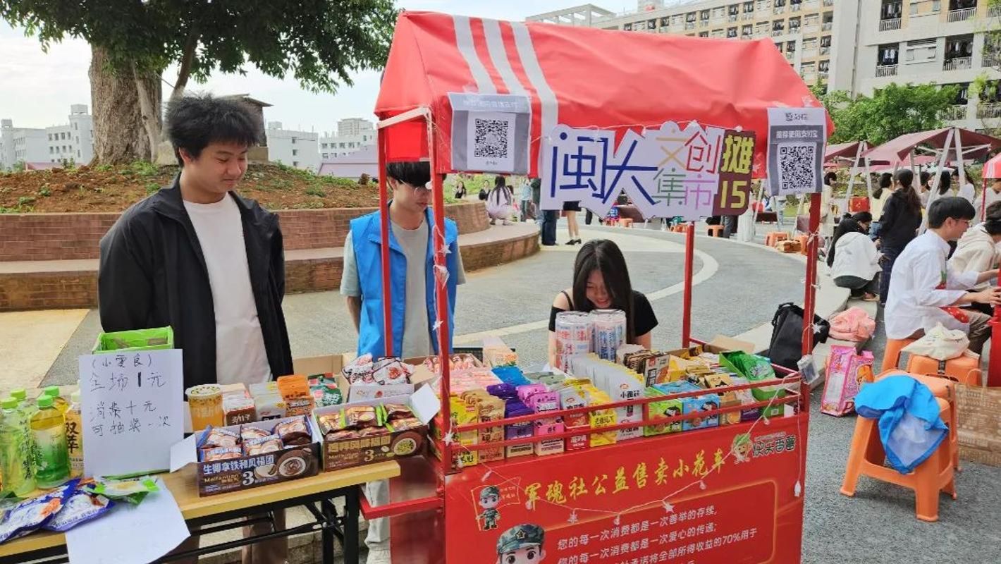 无论是校内的“来财小铺”钩织玩偶、“指尖艺趣”创意手工花,还是校外“岩城叙在地风物馆”的闽西文创礼品、“晓苗拼布工作室”的拼布刺绣,每一个摊位都充满了惊喜!非遗香文化、创意咖啡、皮艺布艺……你想要的创意好物这里全都有!
