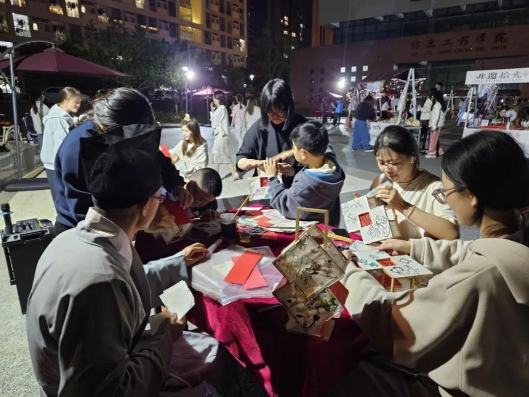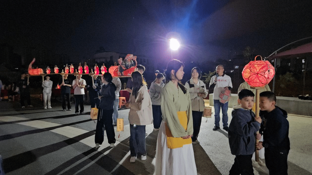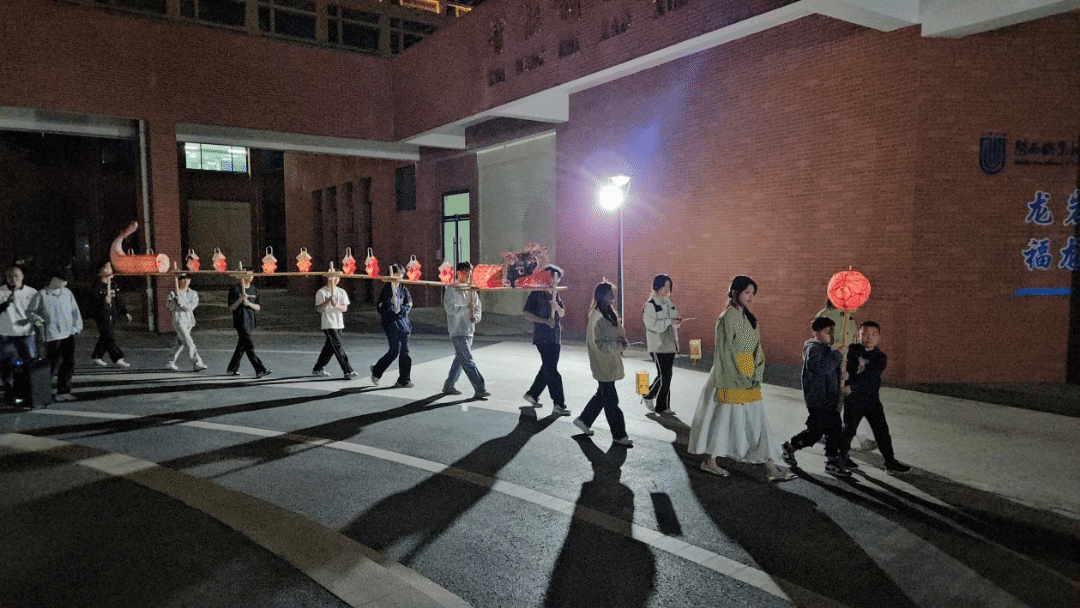 最最最精彩的时刻来啦!活动接近尾声时,“非遗拾光”带来的非遗龙灯游龙活动闪亮登场!夜色中,舞动的龙灯如同一条流动的星河,同学们围在周围欢呼雀跃,传统文化与现代创意完美碰撞,简直太震撼了!