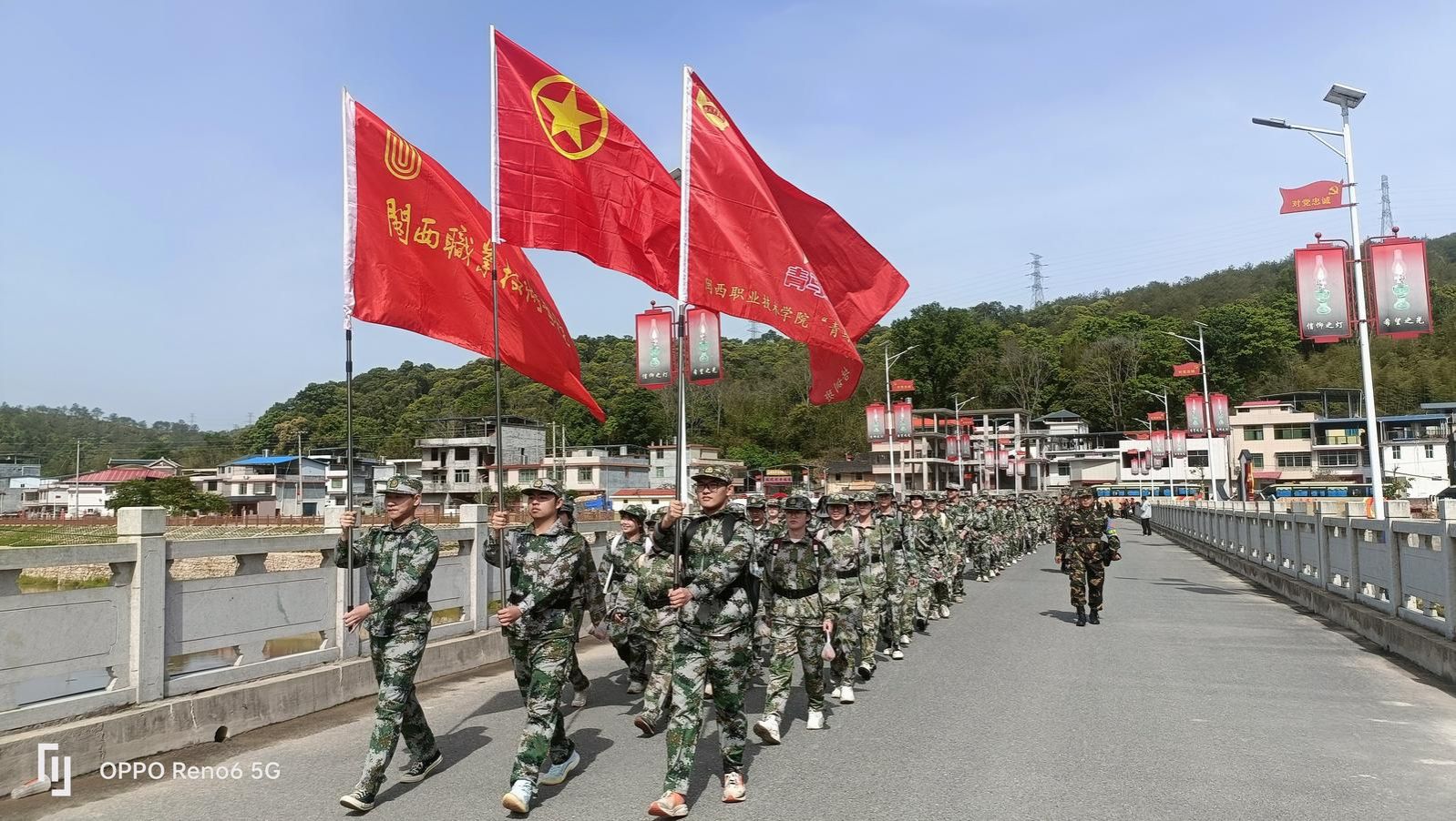 出征仪式上,校团委负责人为学员们作动员讲话,老师们为学员授旗出征、发放干粮,再现革命年代“壮行”场景。随后,全体学员徒步5公里穿越成功大桥至伯公凹,沿途结合“新时代长征精神”开展主题讨论,在行走中感悟革命先辈的奋斗历程。