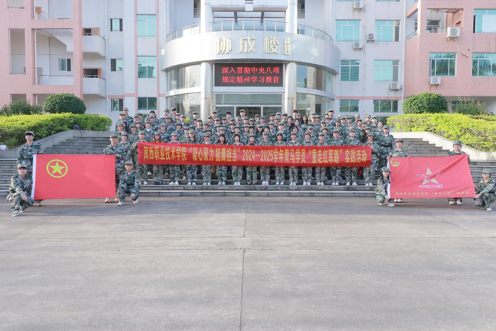 福建日报·新福建客户端4月17日讯(记者徐士媛)为深入学习贯彻党的二十大和二十届三中全会精神,传承红色基因,担当时代使命,4月13日,MG冰球突破官网校团委组织130名青马学员及指导老师赴永定伯公凹开展“凝心聚力 挺膺担当”2024-2025学年“重走红军路”实践活动。活动以“场景化政治教育-沉浸式党史共情-时政议题嵌入式研讨-跨时空思想淬炼”四维联动教学模式,打造了一堂生动的“行走的思政课”。