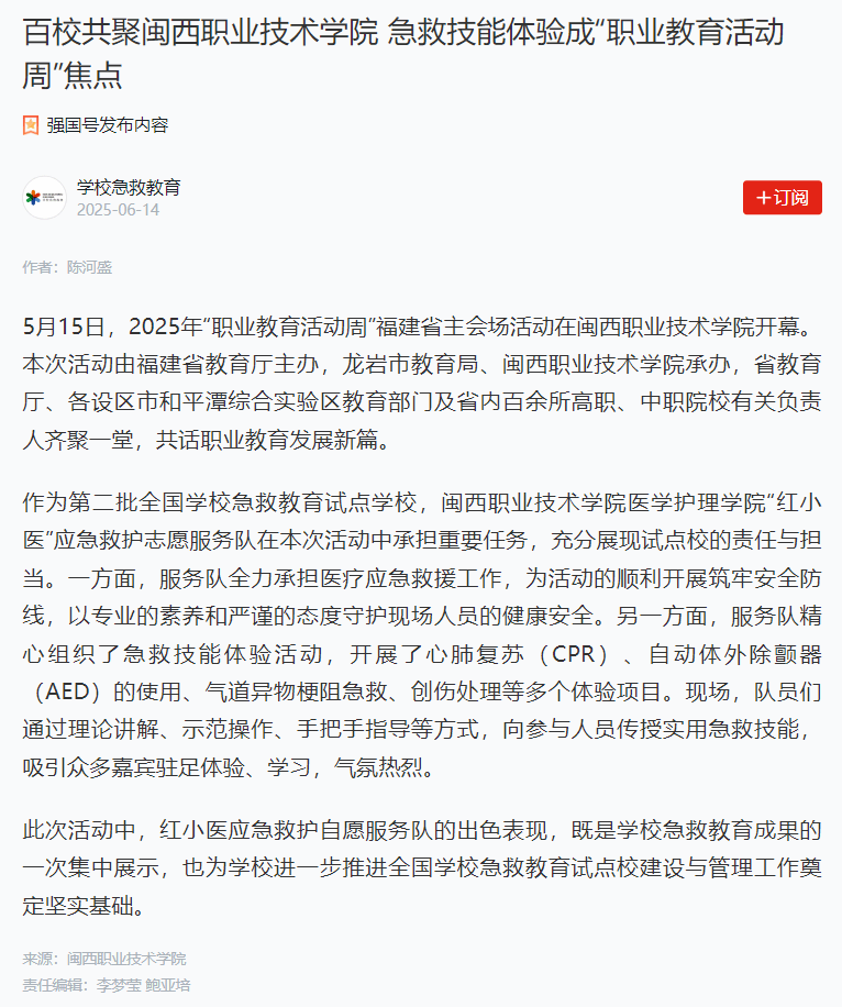 此次活动中,红小医应急救护自愿服务队的出色表现,既是学校急救教育成果的一次集中展示,也为学校进一步推进全国学校急救教育试点校建设与管理工作奠定坚实基础。