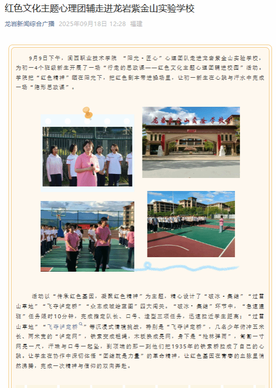 上一条:【龙岩新闻综合广播】红色文化主题心理团辅走进龙岩莲东小学