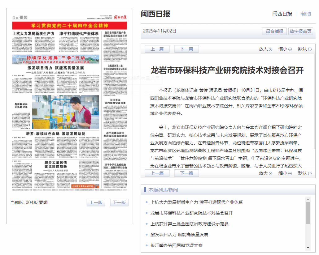 会上,龙岩市环保科技产业研究院负责人向与会嘉宾详细介绍了研究院的定位宗旨、研发实力、核心技术成果与未来发展规划,展示了其在服务地方环保产业发展方面的综合能力。在专题报告环节,两位特邀专家厦门大学教授梁君荣、龙岩市新罗区环境监测站高级工程师卢琦星分别围绕“迈向绿色未来:环保科技与前沿技术”“管住危险废物 留下绿水青山”主题,作了前沿务实的专题讲座,为在场企业带来了最新的技术动态与政策解读。随后,与会人员进行了热烈深入交流,达成了多项初步对接意向。
