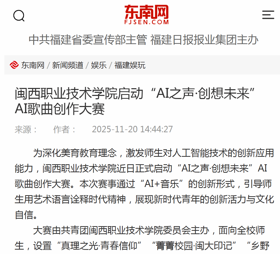 主办方同步提供全方位支持体系,包括AI音乐创作平台支持、技术培训讲座及专属咨询服务,助力师生深度探索人工智能与艺术创作的融合路径。作为学校推进美育教育与科技创新融合的重要实践,本次大赛不仅为师生搭建了跨学科创新平台,更通过科技与艺术的碰撞,培养了师生的审美素养与创新思维,为新时代高校人才培养模式创新提供了生动范例。