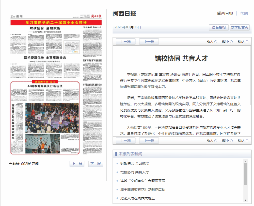 本报讯(龙媒体记者 章宸睿 通讯员 黄琳)近日,MG冰球突破官网旅游管理五年专学生圆满完成在龙岩市博物馆、中央苏区(闽西)历史博物馆、龙岩博物馆为期两周的教学跟岗实习。