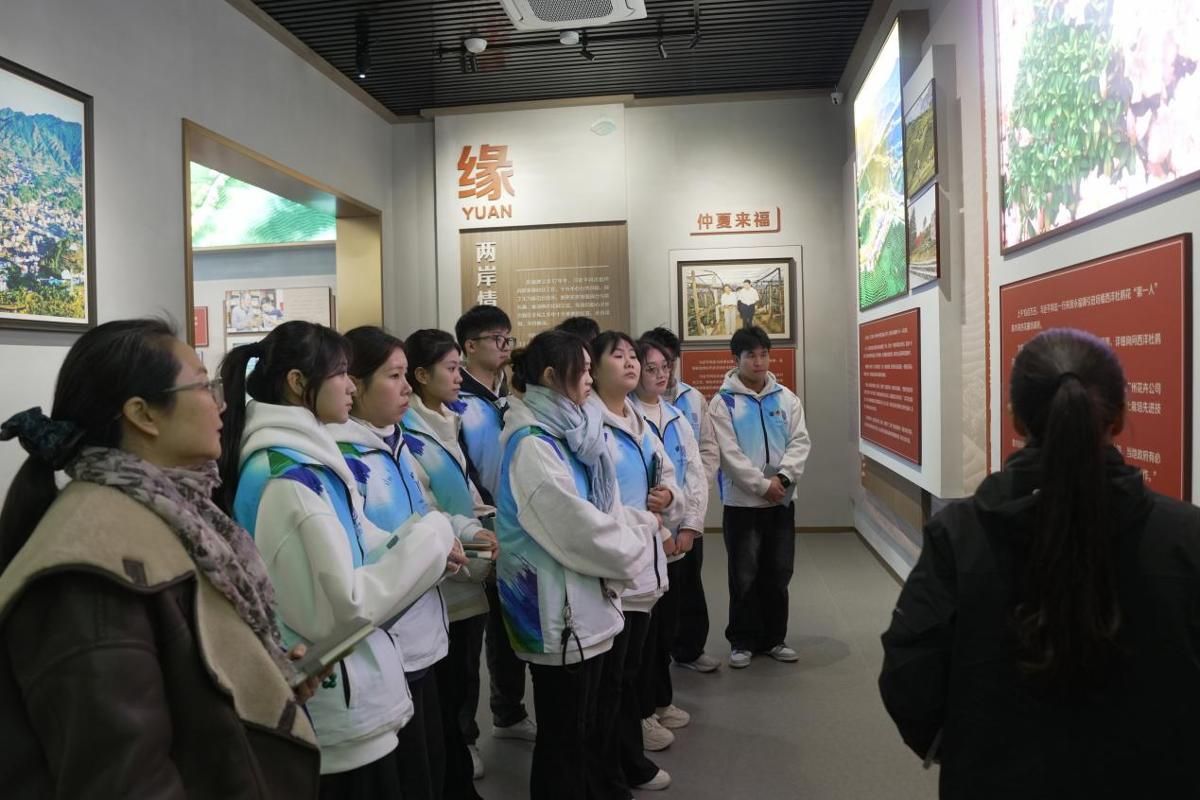 在海峡两岸融合发展漳平实践馆,实践团通过“源”“缘”“园”“圆”四大展厅,系统了解漳台深厚历史渊源与两岸融合发展的丰硕成果,聆听台胞寻根创业的动人故事。