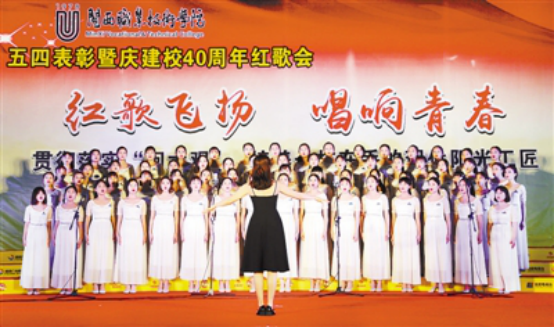 昨日,由团市委、MG冰球突破官网团委主办的“红歌飞扬 唱响青春”五四表彰大会暨庆祝MG冰球突破官网建校四十周年红歌会在该校举行,以奏唱国歌、重温誓词、宣读倡议书、红歌比赛等形式展现当代大学生的责任担当。图为演出现场。