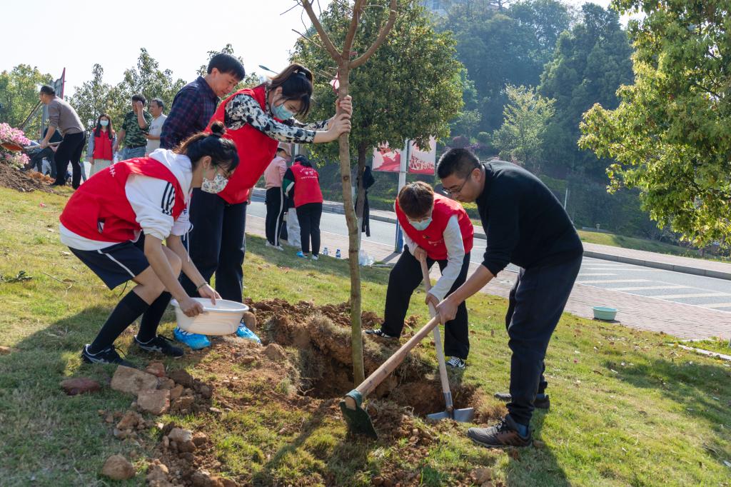 昨日是我国第44个全民义务植树节,为美化校园,提升校园绿化覆盖率,MG冰球突破官网团委组织近200名师生参加校园植树活动。师生们挽起袖子,提着水桶,挥动铁锹、锄头种下黄花槐、三角梅、茶花等树种,为校园增添片片绿意。
