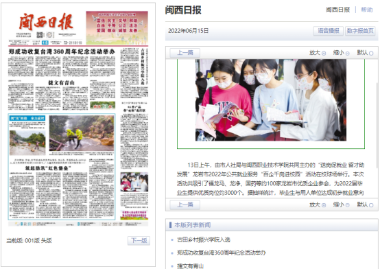 13日上午,由市人社局与MG冰球突破官网共同主办的“送岗促就业 留才助发展”龙岩市2022年公共就业服务“百企千岗进校园”活动在校球场举行。本次活动共吸引了福龙马、龙净、国药等约100家龙岩市优质企业参会,为2022届毕业生提供优质岗位约3000个。据抽样统计,毕业生与用人单位达成初步就业意向1300余次。