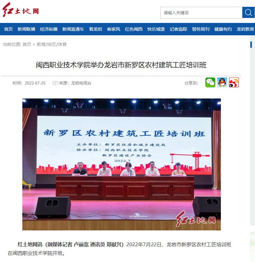 2022年7月22日,龙岩市新罗区农村工匠培训班在MG冰球突破官网开班。