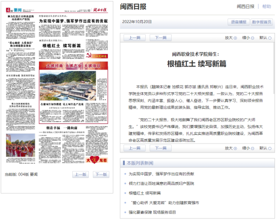 “党的二十大报告,极大地鼓舞了我们闽西老区苏区职业院校的广大师生。”该校党委书记卢伟耀说,我们要坚定历史自信,增强历史主动,弘扬伟大建党精神,传承和发扬苏区精神,扎扎实实推进高质量职业院校建设,为闽西革命老区高质量发展示范区建设添砖加瓦。