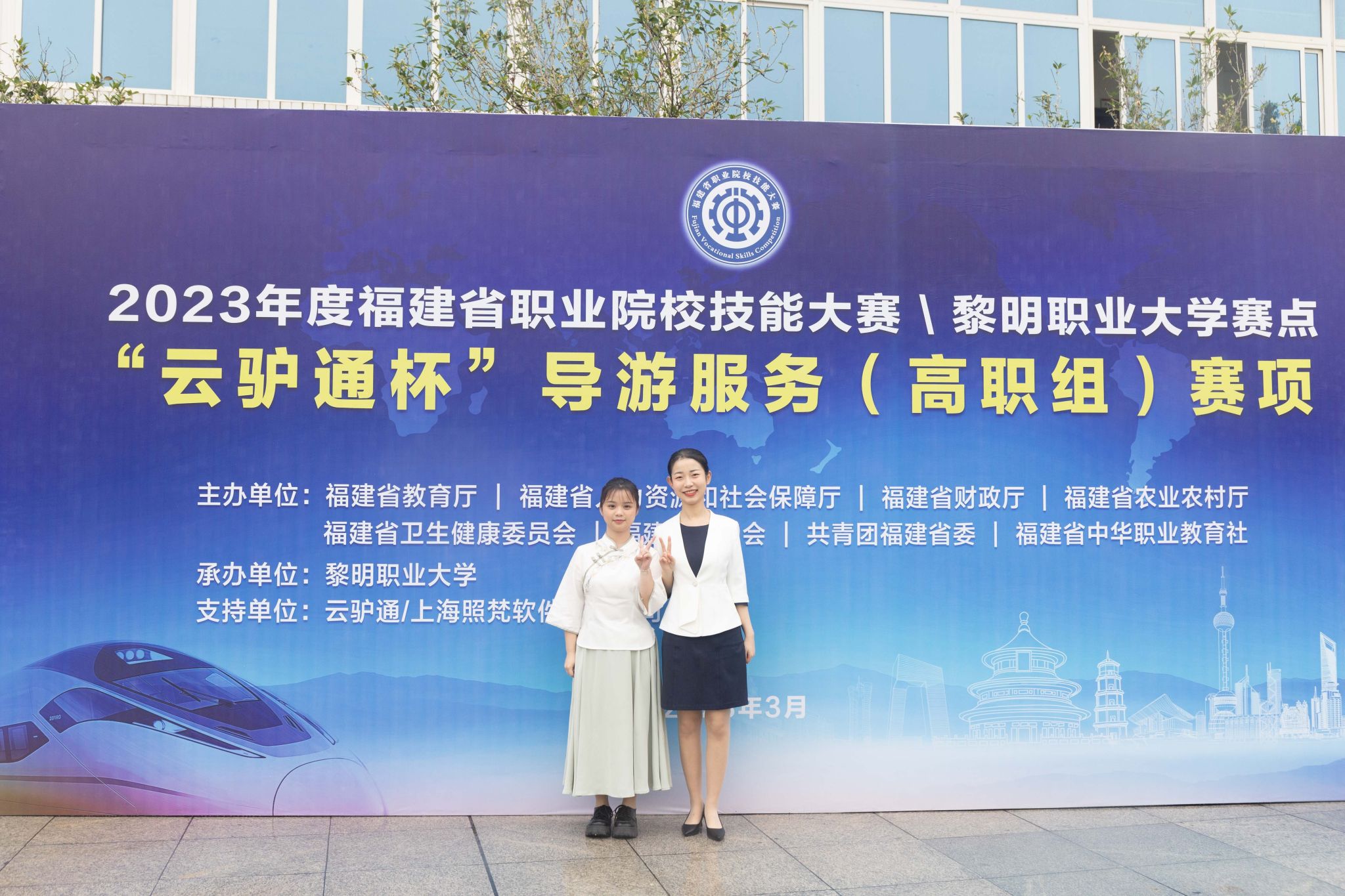 3月24日至26日,2023年福建省职业技能大赛导游服务赛项在泉州黎明职业大学举行。赛项共分为导游基础知识理论考试、导游文化元素抽选讲解、导游自选导游词讲解、导游才艺运用、导游英语口语五个环节,最终文化与旅游学院21级旅游管理专业五年专江金艳同学获得二等奖。
