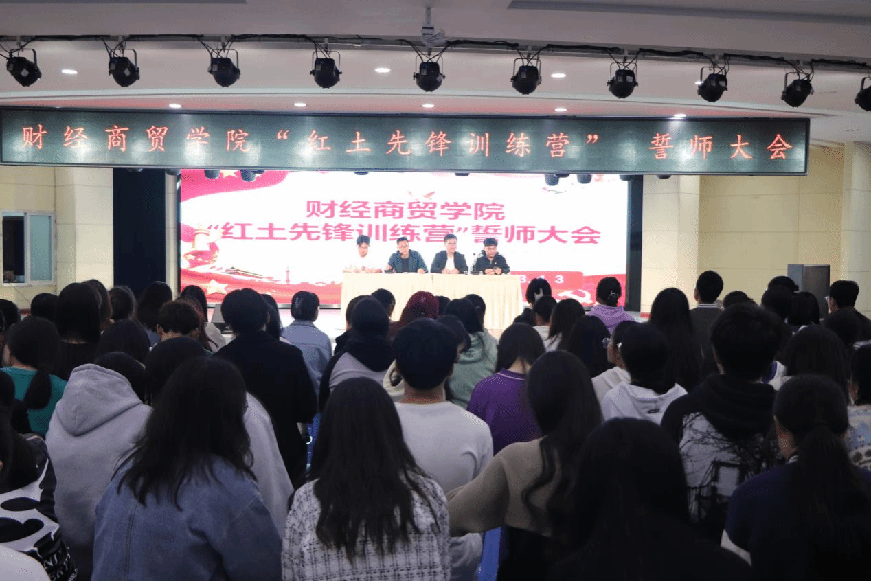 4月3日晚,财经商贸学院在学校数字化艺术中心组织召开第一期“红土先锋训练营”誓师大会。第一期“红土先锋训练营”是在财经商贸学院第二届学生社区文化节依托下开展的活动,本期活动的主题为“自律自强 学法守法”,共有265名学生报名参加。会议由辅导员张继东老师主持。
