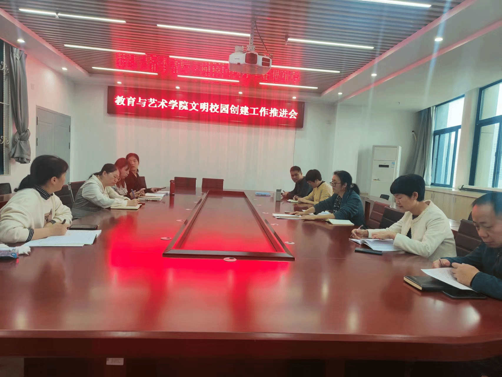 4月6日上午,教育与艺术学院召开省级文明校园创建工作推进会,会议由学院党委书记李瑛主持,院领导张龙专、姚建华、曹熠城和全体指标项目对接人参与。