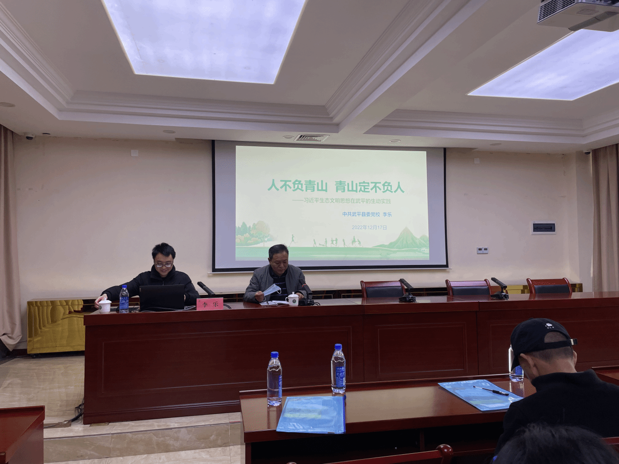 12月17日,在武平县委党校听取了福建师范大学马克思主义学院郑传芳教授的《党的二十大精神融入思政课》、中共武平县委党校李乐老师的《人不负青山,青山定不负人--习近平生态文明思想在武平的生动实践》、MG冰球马克思主义学院林振东教授《讲好总书记在福建的故事 奋进新的赶考之路-学习党的二十大精神》等专题讲座和福建农林大学马克思主义学院黄秀玲副教授的《毛泽东思想及其历史地位》教学示范课。