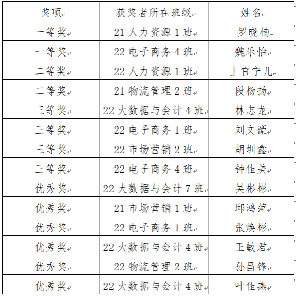 本次演讲比赛获奖情况: