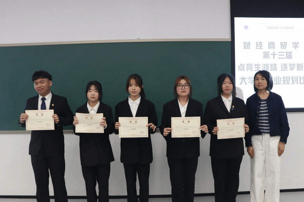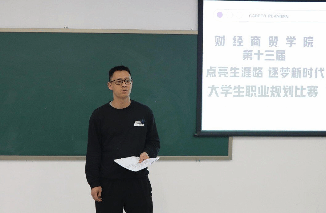 为进一步增强大学生职业生涯规划意识,引导大学生树立正确的就业观,认识到人生规划的重要性,充分发挥“以赛促学、以赛促教”的积极作用,推动职业生涯规划教育与思想政治教育紧密结合、与专业教育深度融合,财经商贸学院于2023年4月27日晚,在万源楼一楼E教室举办第十三届大学生职业生涯规划比赛,担任本次比赛的评委有团委副书记卢沂老师、俞如楠老师、林峰艳老师、蓝冬玉老师、张继东老师、胡秀华老师、饶淑雯老师、罗长金老师,参与本次比赛有2021级、2022级在校学生。