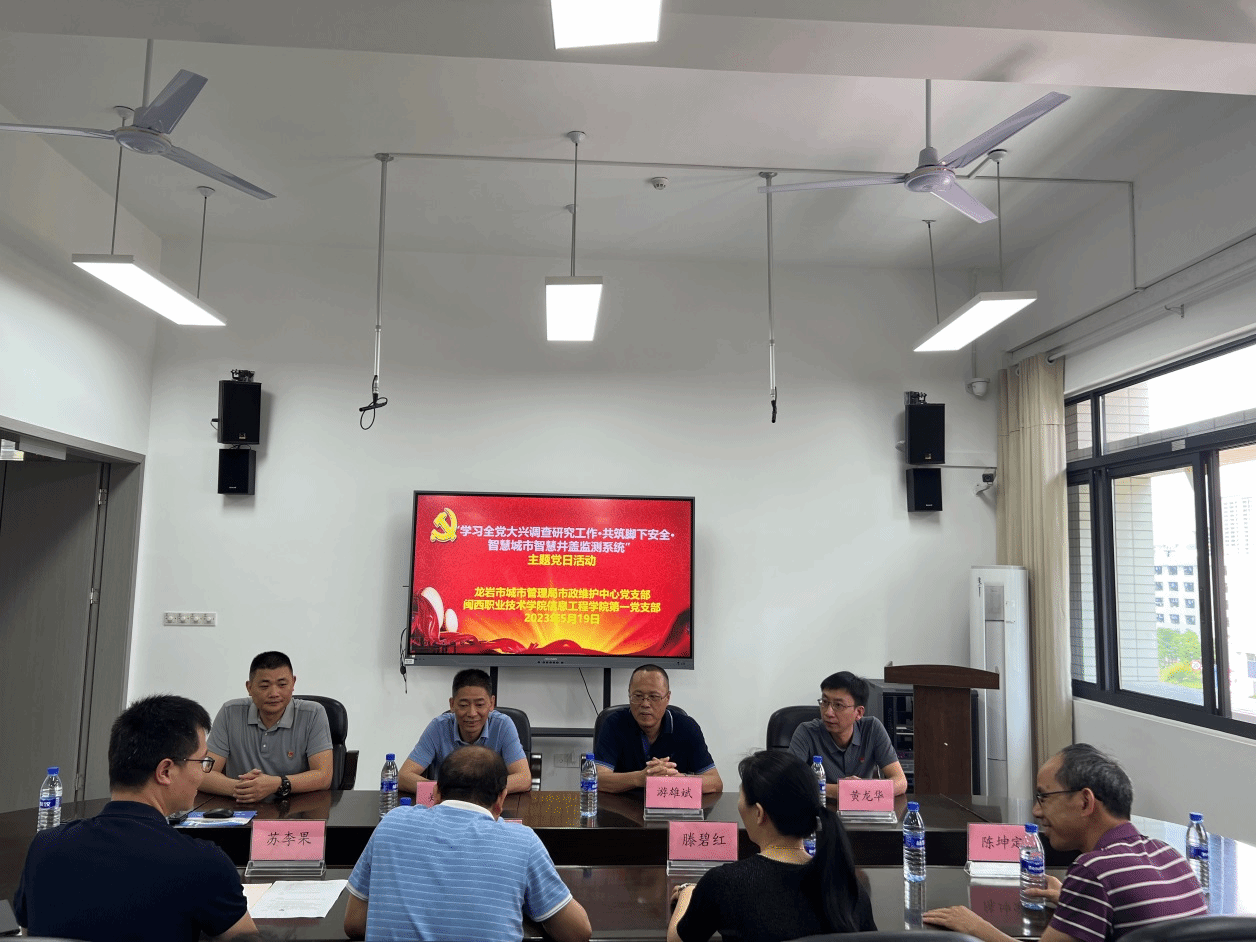 近日,MG冰球信息工程学院第一党支部与龙岩市城市管理局市政维护中心党支部共同开展主题为“智慧赋予城市活力 数字保障脚下安全”的党日活动,旨在学习全党大兴调查研究工作,双方共同推进智慧城市相关工作。双方支部党员参加本次主题党日活动。