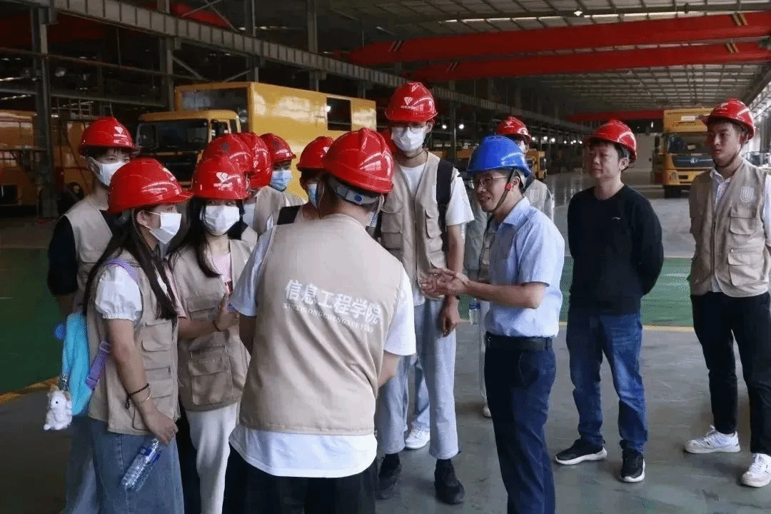 师生们先是到公司会议室观看宣传片,了解该公司的企业文化。接着,师生们戴上安全帽走进生产车间,参观并听取讲解员的解说并近距离感受制作汽车的步骤。随后在公司负责人的陪同下来到汽车内部车间,观看工作人员精湛的技艺,并感受车间内部整齐有序的机器运作。最后,同学们来到实践基地,对工作人员精益求精的工匠精神表示崇高的敬意。