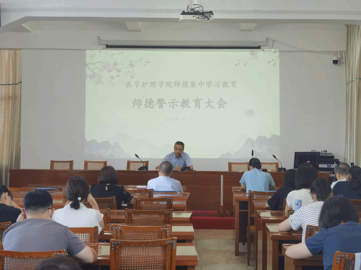 为进一步学习宣传贯彻党的二十大精神,加强师德师风建设,全面提升教师的思想政治素质和职业道德水平,根据学校《中共MG冰球突破官网关于印发〈MG冰球突破官网师德集中学习教育实施方案〉的通知》文件精神,医学护理学院党委迅速谋划,结合学校实际,制定活动计划,7月1日在天马校区五楼会议室召开师德集中学习教育动员大会,全面推进师德集中学校教育活动。