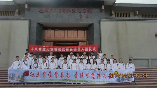 4月22日,中专部2012级276位同学和带队老师赴毛泽东才溪乡调查纪念馆举行18岁成人宣誓仪式暨新团员入团仪式。仪式由部门领导讲话、班主任寄语、成人心声、成人宣誓、成人签字等四部分组成。