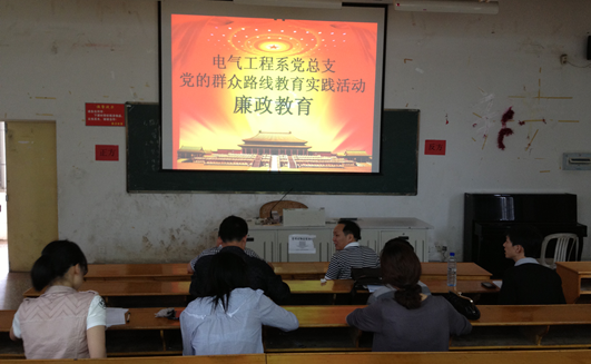 为进一步加强党风廉政建设,深入推进群众路线教育实践活动,4月17日下午,电气工程系党总支组织全体党员观看《堂堂外表下的真相——李堂堂受贿案警示录》教育片,开展集中学习廉政警示教育活动。