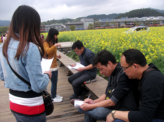 师生们一同参观古田会议纪念馆,毛泽东主席纪念园,并在主席园里举行了预备党员入党宣誓仪式、全体团员重温入团誓词等活动,并向景区周边居民和游客做了旅游资源的开发现状等相关问卷调查。
