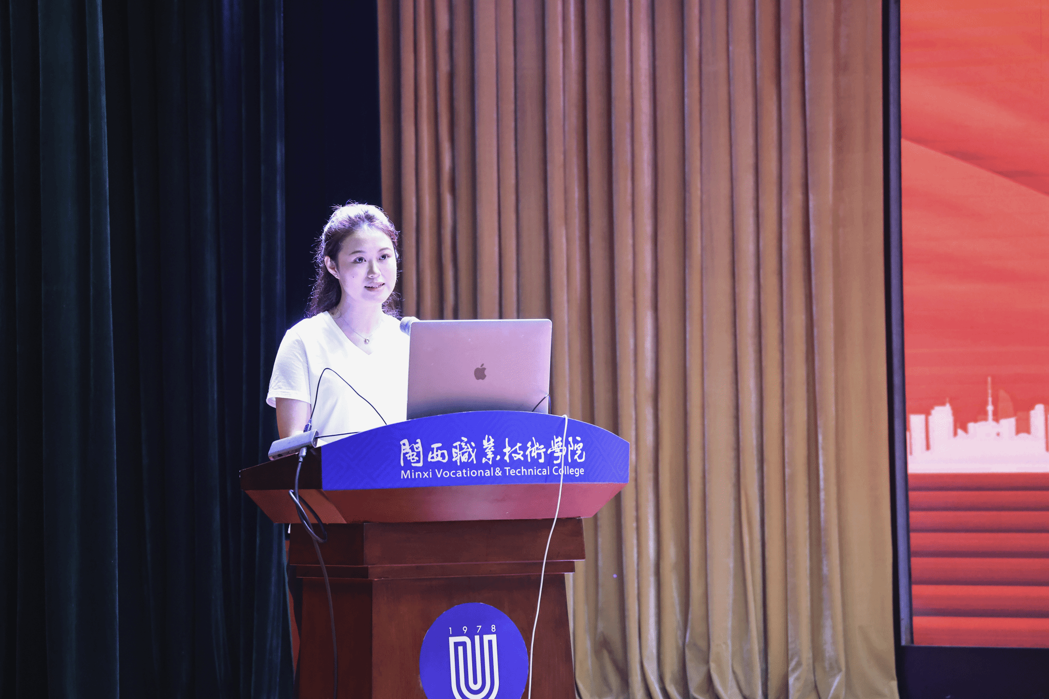 付建丽老师作为教师代表发言,“想要成功先用功”、“今天不放弃、明天创奇迹”,对新生如何成长为一名“一技在手的新时代阳光工匠”进行了体会分享。