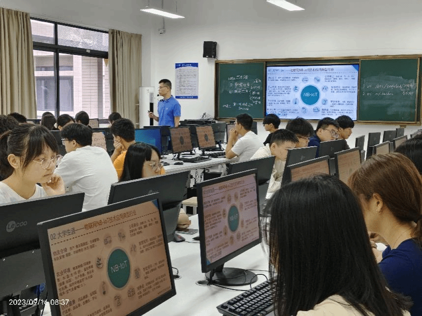 会上,苏老师首先向学生们介绍了物联网应用技术专业的学习内容和课程设置。他详细介绍了物联网技术的基本原理、相关技术的发展和应用案例,引发了学生们浓厚的兴趣。他还对专业的选修课构成进行了讲解,为同学们未来的选课指名了方向。苏老师还对物联网应用技术的就业前景进行了介绍,使同学们对未来的职业发展有了更为清晰的认识。