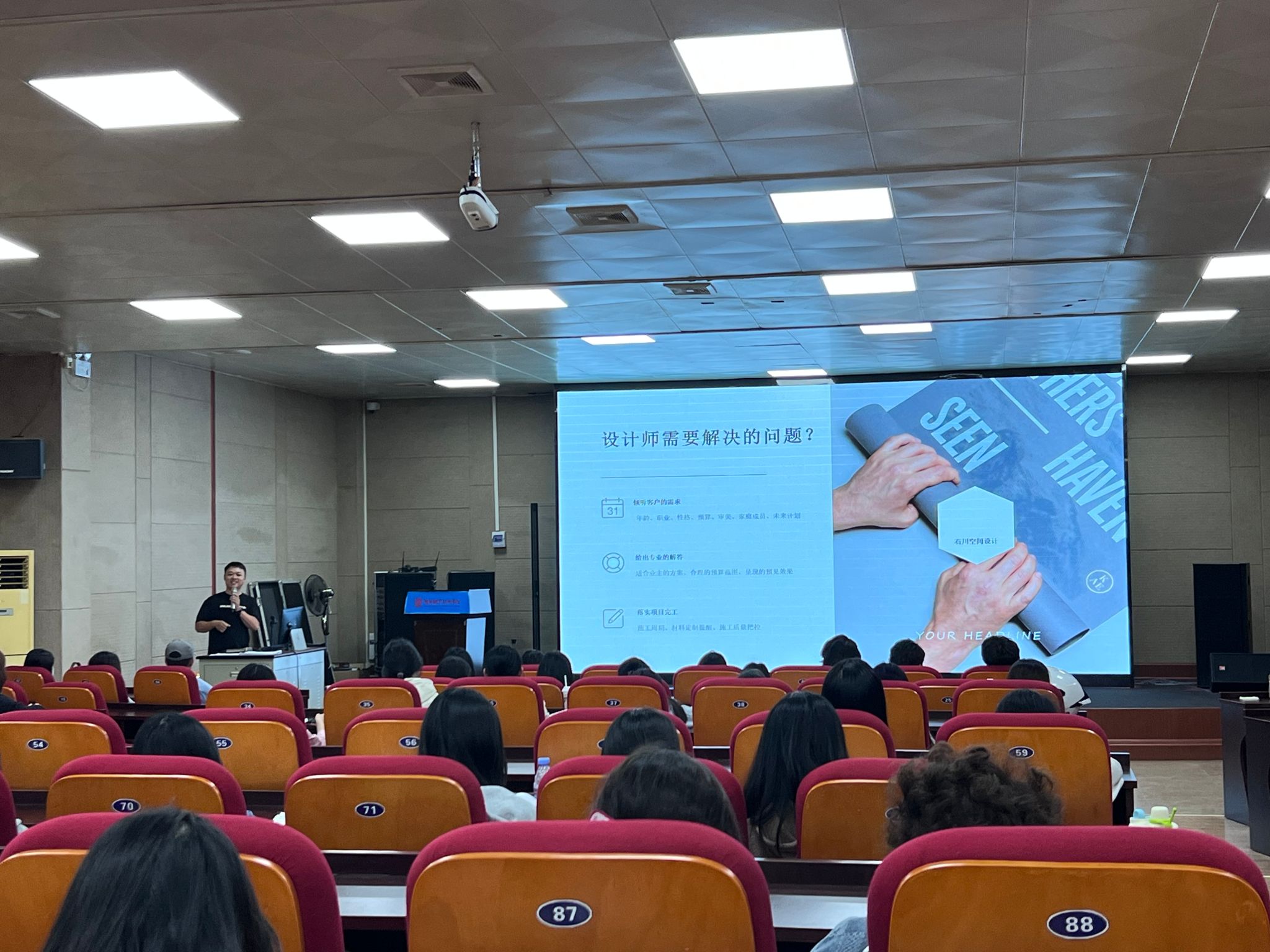 下午,室内设计专业邀请了本专业的优秀校友、石川空间设计创始人——郑文文,开展了一场题为“室内设计师所具备的职业素养及技能”的主题讲座。讲座从设计师的角度告知学生设计师是什么,有哪些类型,需要做些什么,让学生对室内设计专业应具备的能力有了进一步的了解。同时郑文文将自身学习、就业到创业的经历和经验分享给了大家,学生们感同身受,大受鼓舞。