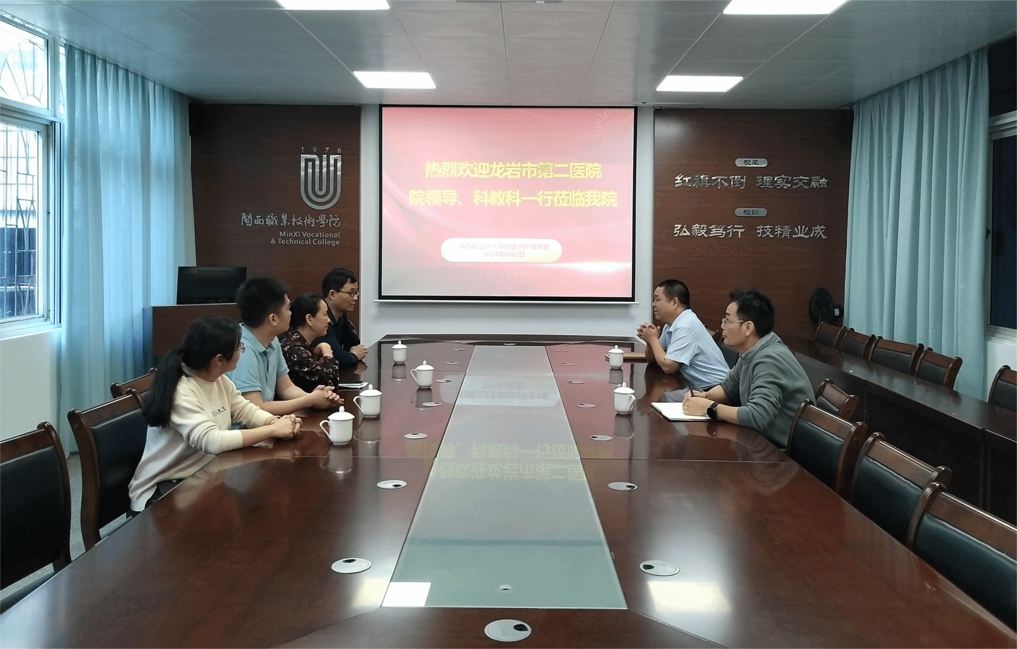 4月2日下午,龙岩市第二医院副院长胡树桥携科教科科长赖满珍、副科长邱博文等一行莅临医学护理学院进行座谈交流,医学护理学院领导及部分教师参加了座谈。