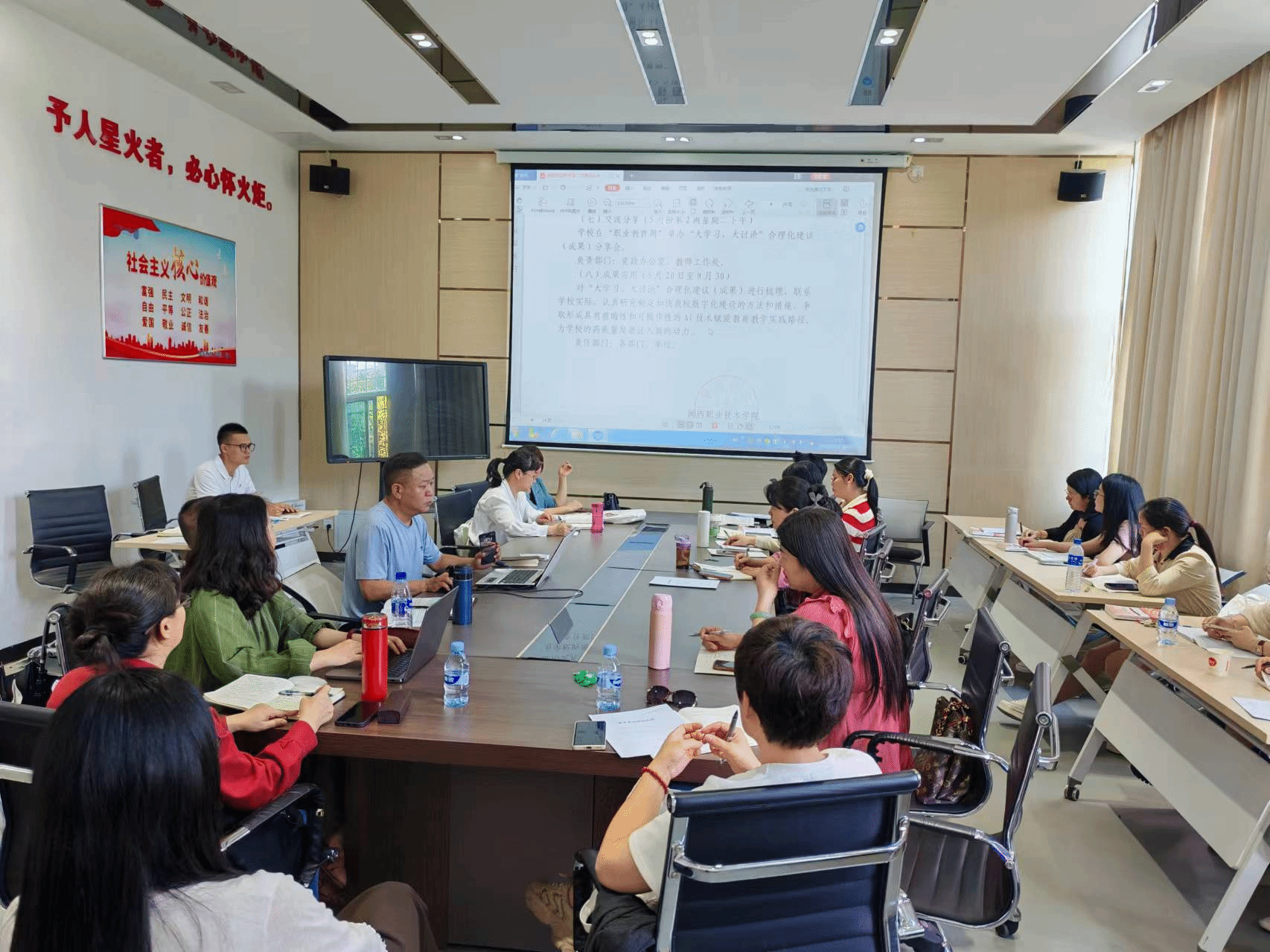 为进一步提升教职工数字素养与技能,营造学习AI技术的浓厚氛围,提高教育教学成效和人才培养质量,4月7日下午,马克思主义学院召开“聚焦AI技术 驱动思政课教育教学改革”的专题会议,部门全体教职工参加会议。
