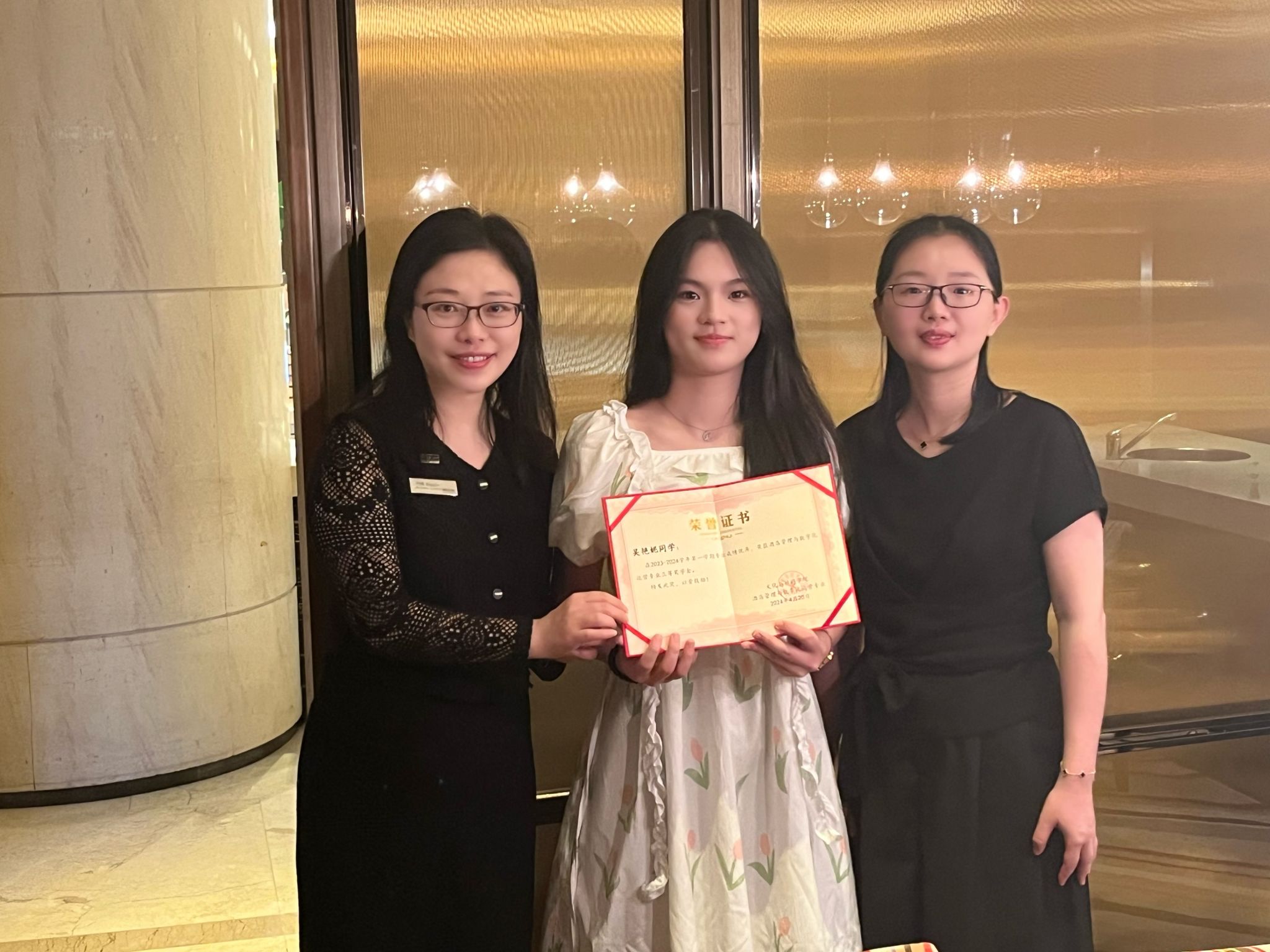 活动最后,企业为专业表现优秀学生颁发奖状,鼓励学生在校夯实酒店管理专业技能,提升职业素养,更积极的参与企业实践。